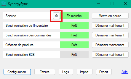 - Cliquez sur l’engrenage pour accéder aux configurations du service.