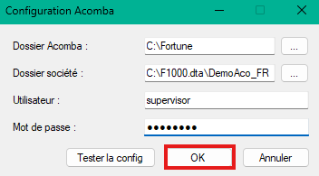 - Entrez un utilisateur de votre système en magasin qui possède tous les droits nécessaires, entrez son mot de passe, puis cliquez sur OK.