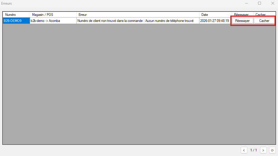 - Pour faire disparaître une erreur corrigée, cliquez sur le bouton Réessayer, confirmer en cliquant sur Oui dans la fenêtre qui s’ouvre. Si vous avez apporté les corrections nécessaires, l’erreur disparaître lors de la prochaine synchronisation selon le type d’erreur.
