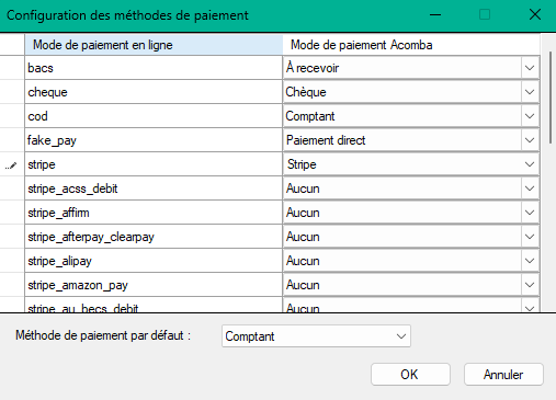 - Assurez-vous que chaque mode de paiement utilisé dans la boutique en ligne est bien associé à un mode de paiement dans votre système en magasin.