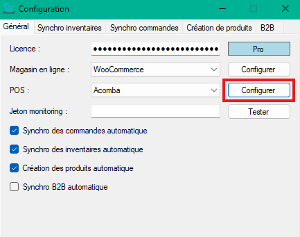 - Cliquez sur le bouton Configurer pou accéder aux configurations du système en magasin.